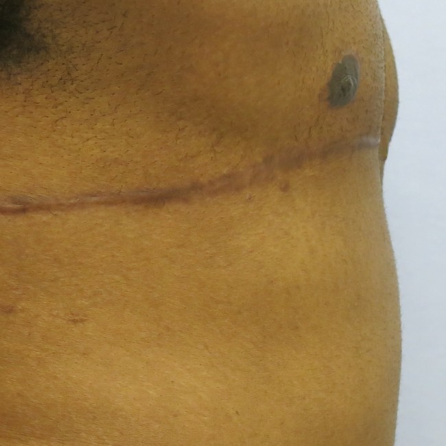 He underwent an abdominoplasty with the removal of skin and excess tissue. He did not need a diastasis repair as he had very good muscle anatomy.