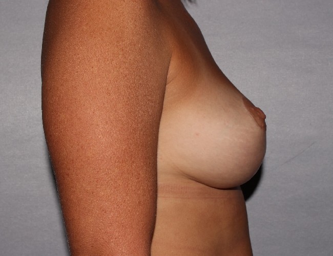 This patient had 350 cc subglandular breast implants placed by another physician. She always felt her implants were too large . She was never comfortable with them. Over several years she started to have discomfort from the weight of the implant. She decided she no longer wanted the breast implants but noted that her nipples are starting to droop. She realized that with removal of her implant without any replacement, she would have even worse sagging or ptosis of the breast.