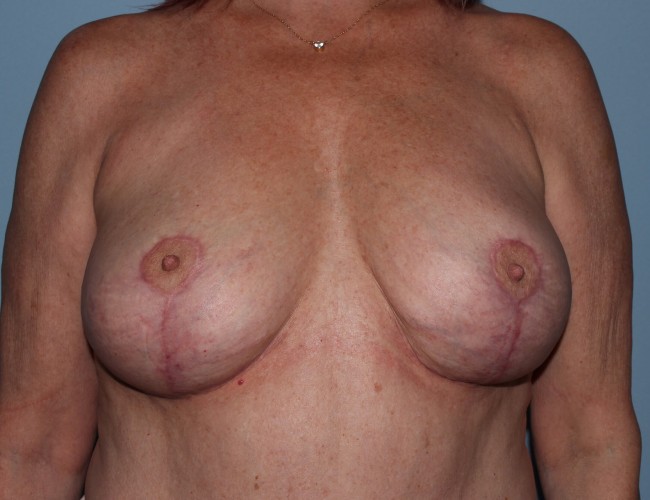 This 53-year-old woman had saline breast implants placed 10 years ago. She has developed some breast drooping and some enlargement of her breasts with aging and no longer desired to be so large. She was not having any significant medical problems related to her implants.