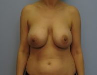 This is a 39-year-old woman who had saline submuscular breast implants performed about 10 years ago. She was initially pleased with her result but over time had gained some weight and developed some ptosis. She did not feel that she needed breast implants anymore. In addition, the patient was concerned about a number of health problems that could never be diagnosed and she was suspicious that she may be suffering a form of breast implant illness. She felt that some of her health issues may be related to her breast implants. She did not have any evidence of capsular contracture or any other obvious implant-related problems. She desired explantation with mastopexy. Because of her desire to maintain a reasonable size breast she opted for some degree of fat grafting during the procedure.