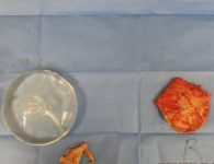 Dr. Lyle performed bilateral implant exchange with a “site change”, which involves placing the implants under the pectoralis muscle to limit future capsular contracture and provide more soft tissue over the implant. She had previous 390cc saline implants. She had them replaced with smooth-walled Mentor 350 cc gel implants with a standard T scar mastopexy. The capsule and implant on the right were removed “en bloc”, which involves removing the implant and its capsule in one piece. The left side was intact, but its capsule was also removed, and the new implant was placed under the muscle. Subglandular implants develop capsular contracture more frequently than submuscular placement. Subglandular (on top of muscle) saline implants are also more easily palpated, and Dr. Lyle always recommends placing saline implants under the muscle.