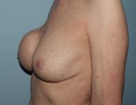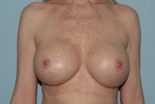 Because of her thin tissue and because of her capsular contracture, she had what is known as a site change from the subglandular position to the submuscular position. This is performed to reduce the risk of future capsular contracture. She had 450 cc breast implants originally, and they were replaced with 490 cc Mentor gel implants.