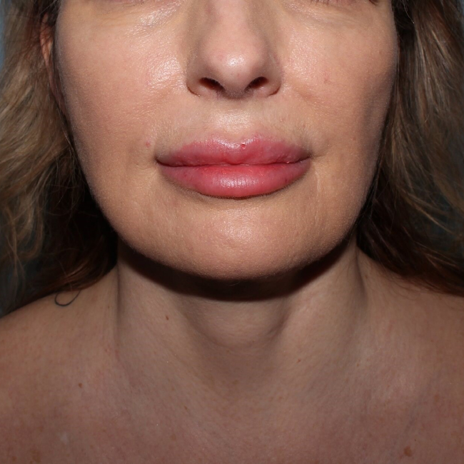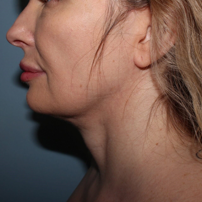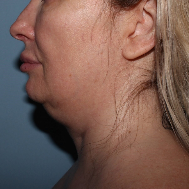 Results were dramatic, with an improved jawline. This procedure can be done with a local anesthetic with mild oral sedation. Recovery is 3 days to 1 week.