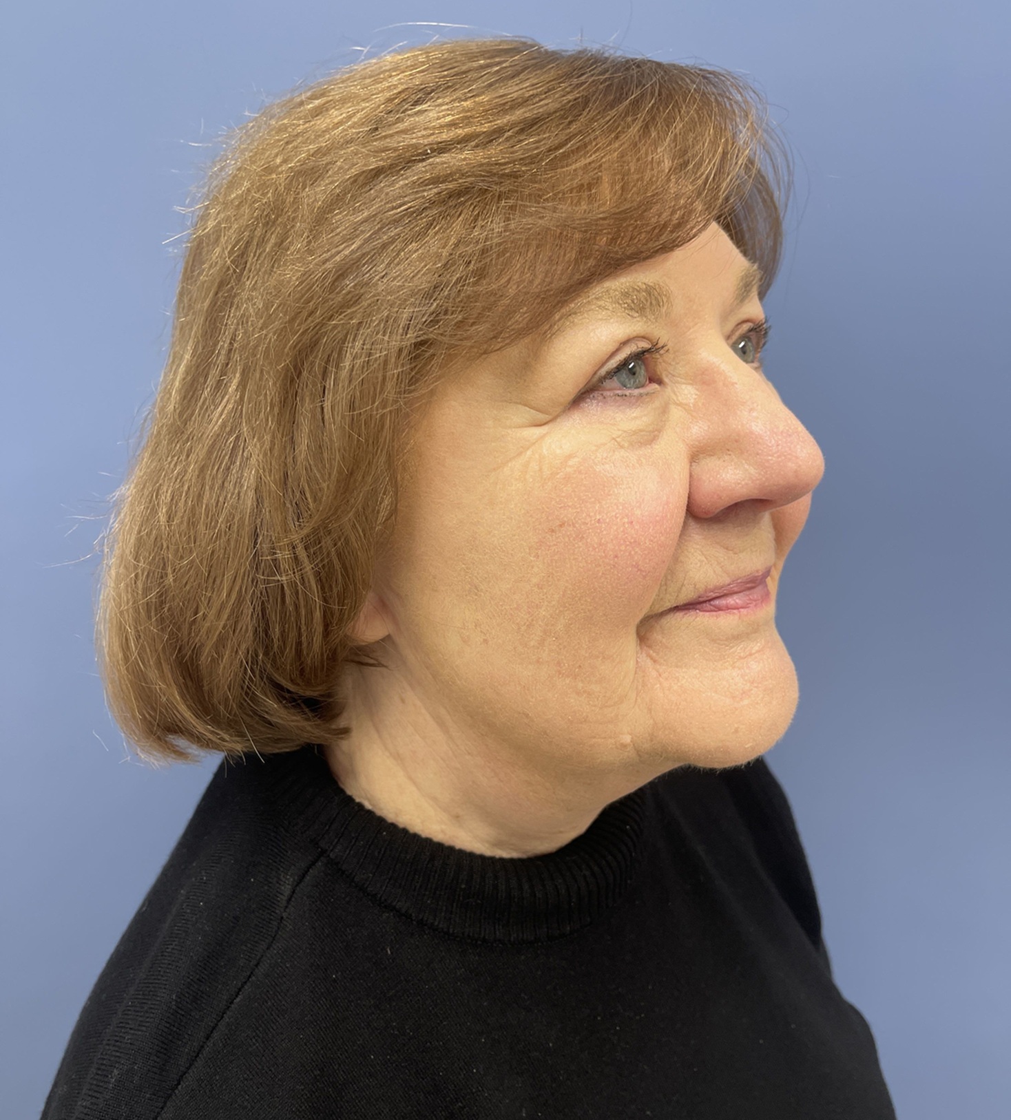 The patient underwent a direct neck lift under local anesthesia only and Dr. Lyle’s office procedure room. Although the results are not quite as dramatic as a facelift, it was a quicker recovery, less anesthesia and in her case, safer.