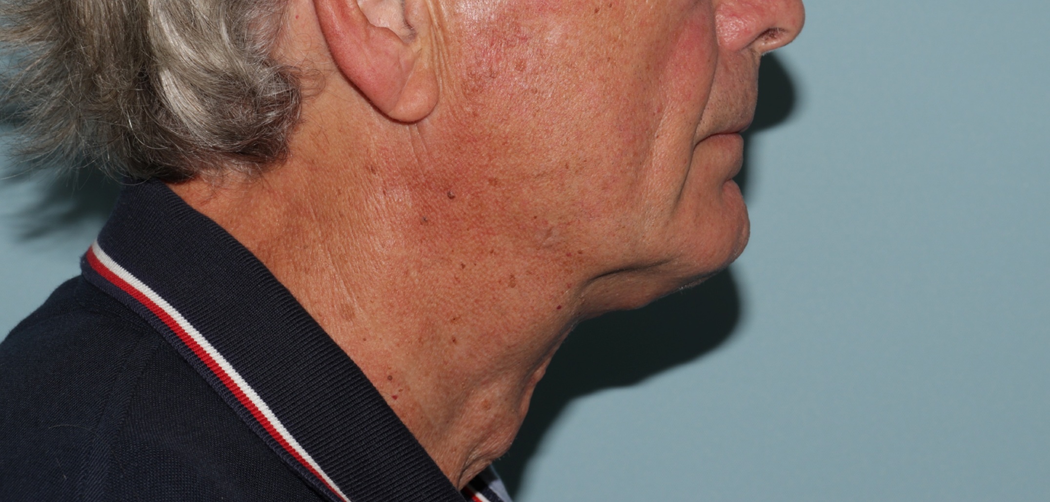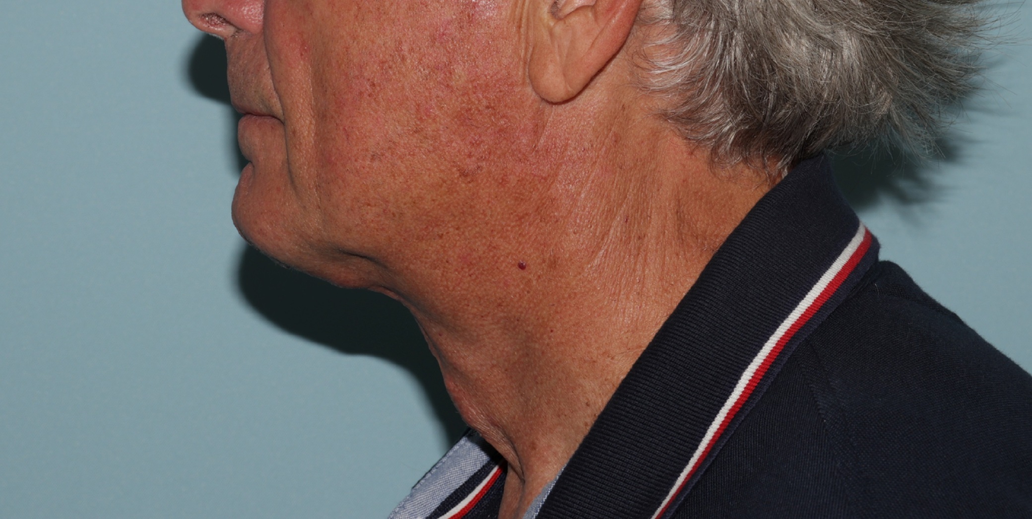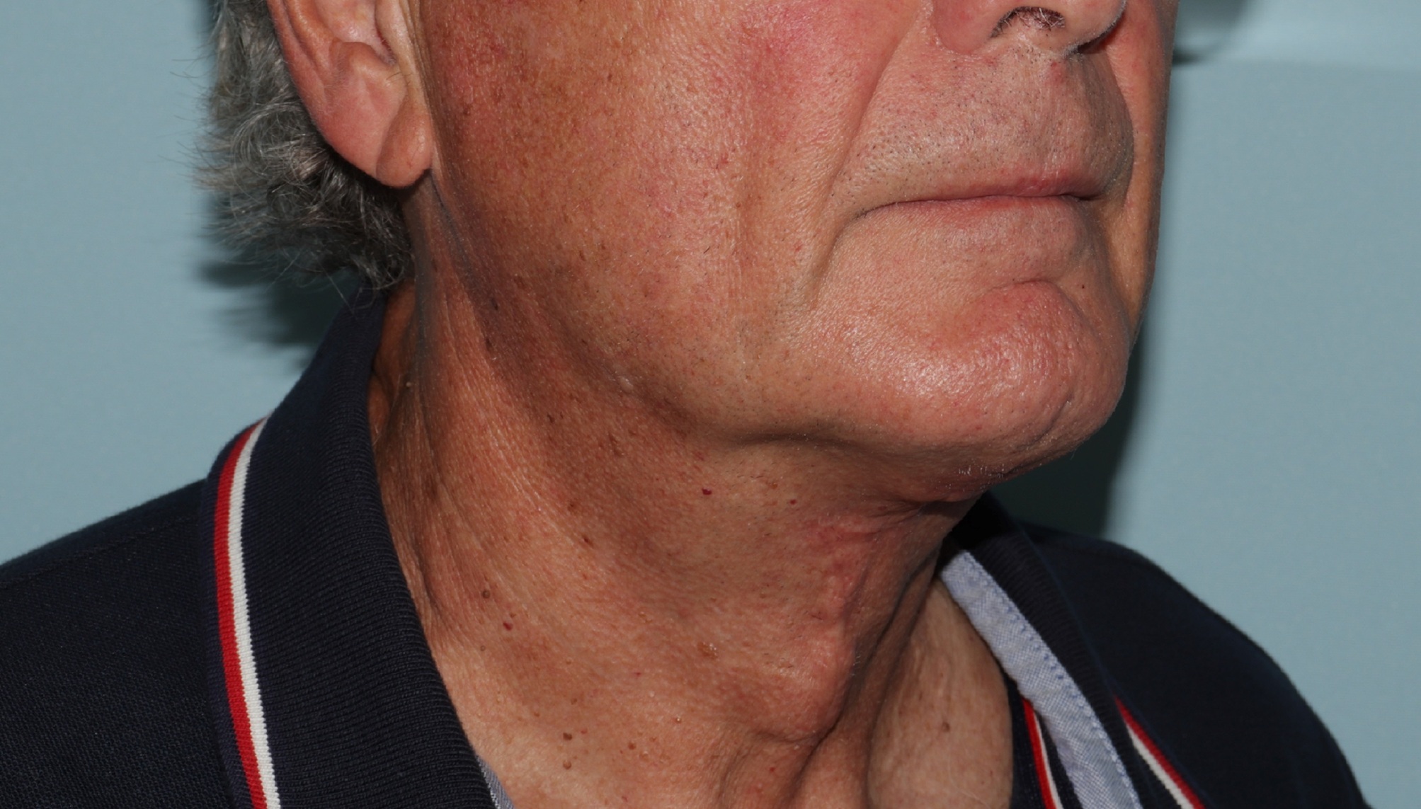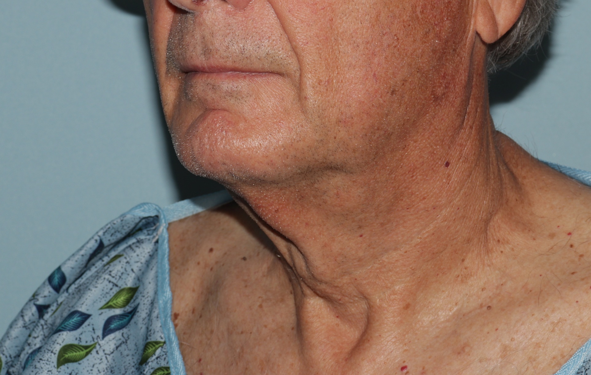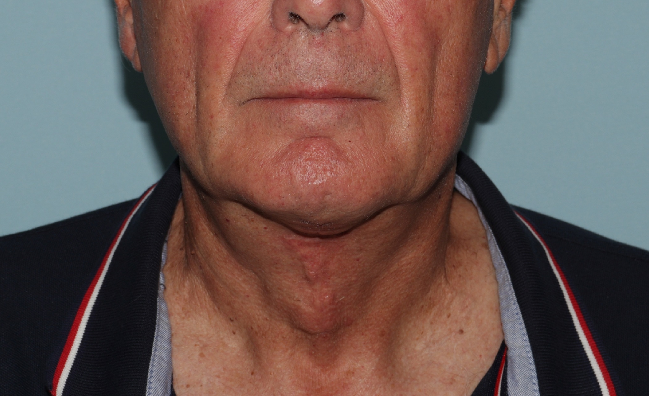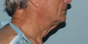 This 74-year-old gentleman wished to have improvement in his loose skin of the neck. He has no interest in a facelift. Noninvasive measures would unlikely make much difference. Dr. Lyle discussed a direct neck lift which involves removing the skin of the mid portion of the neck directly. Although this does result in a scar, it usually heals pretty well and since in men this skin is hair-bearing, can be hidden while it heals with some beard growth.