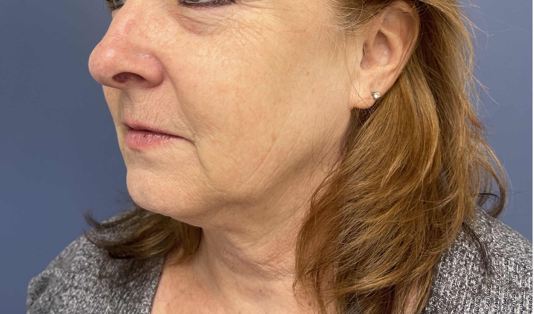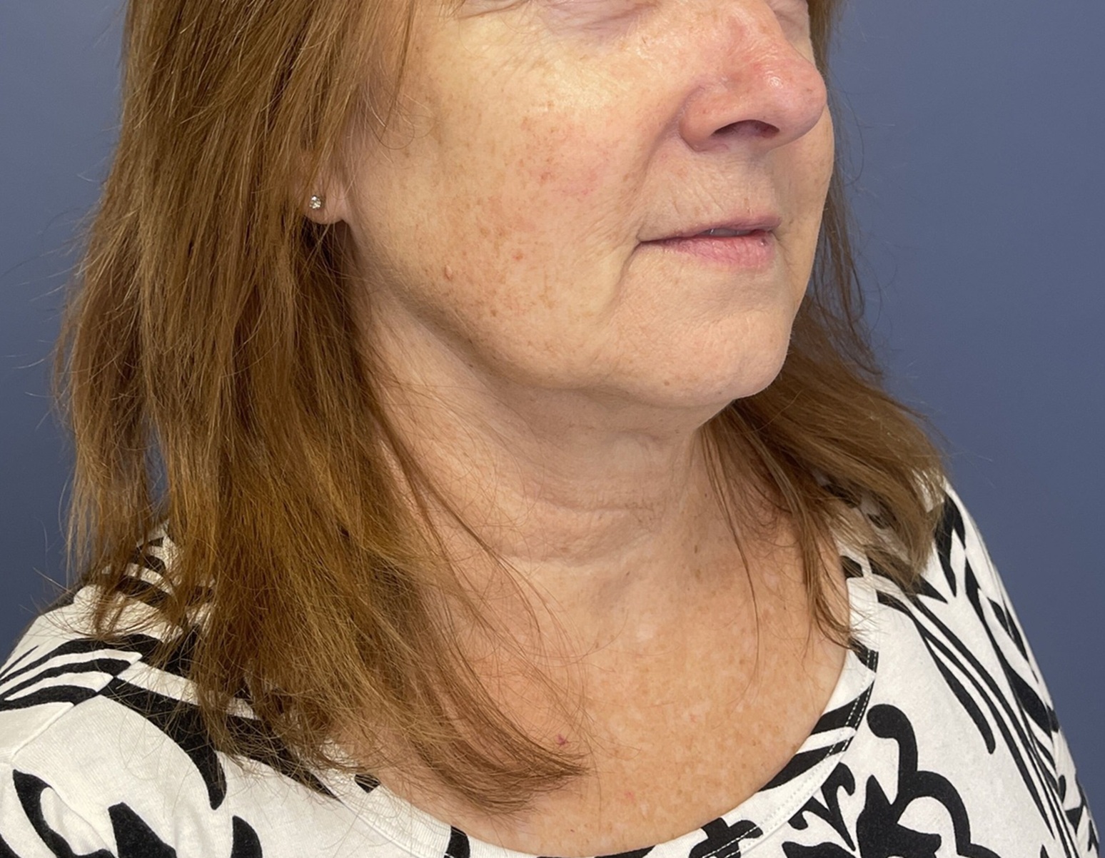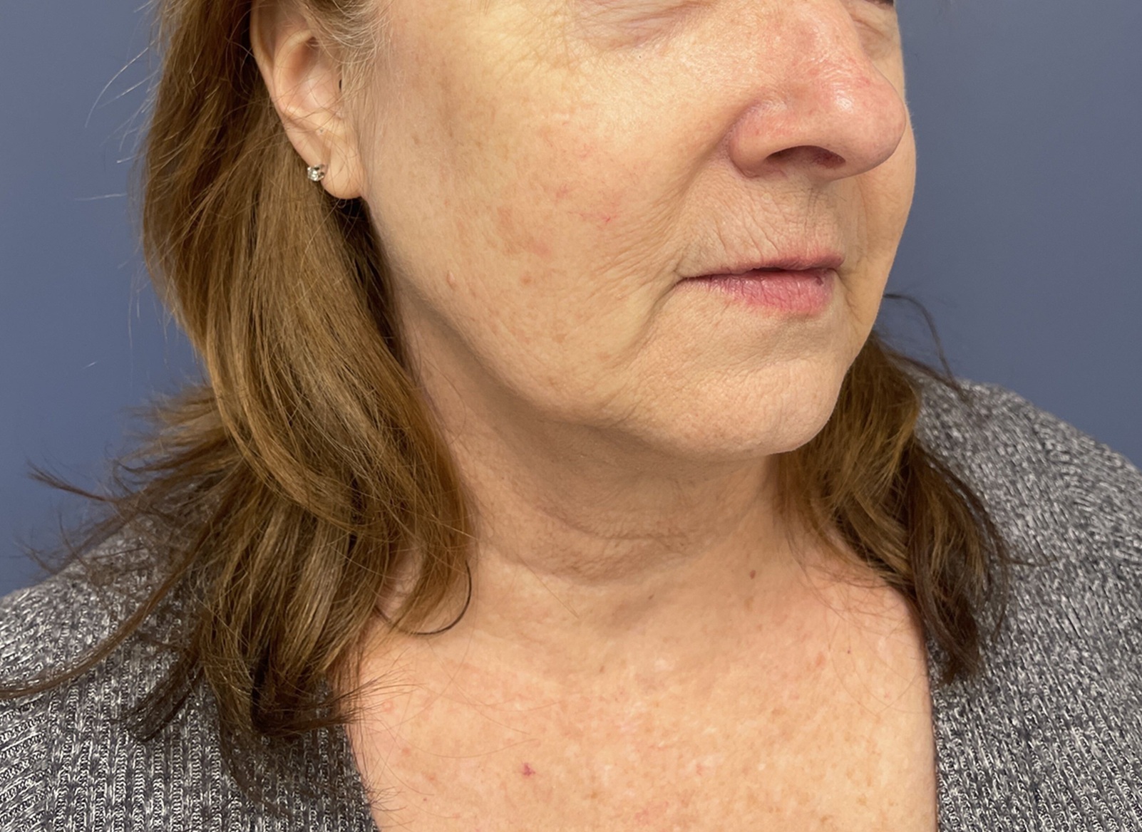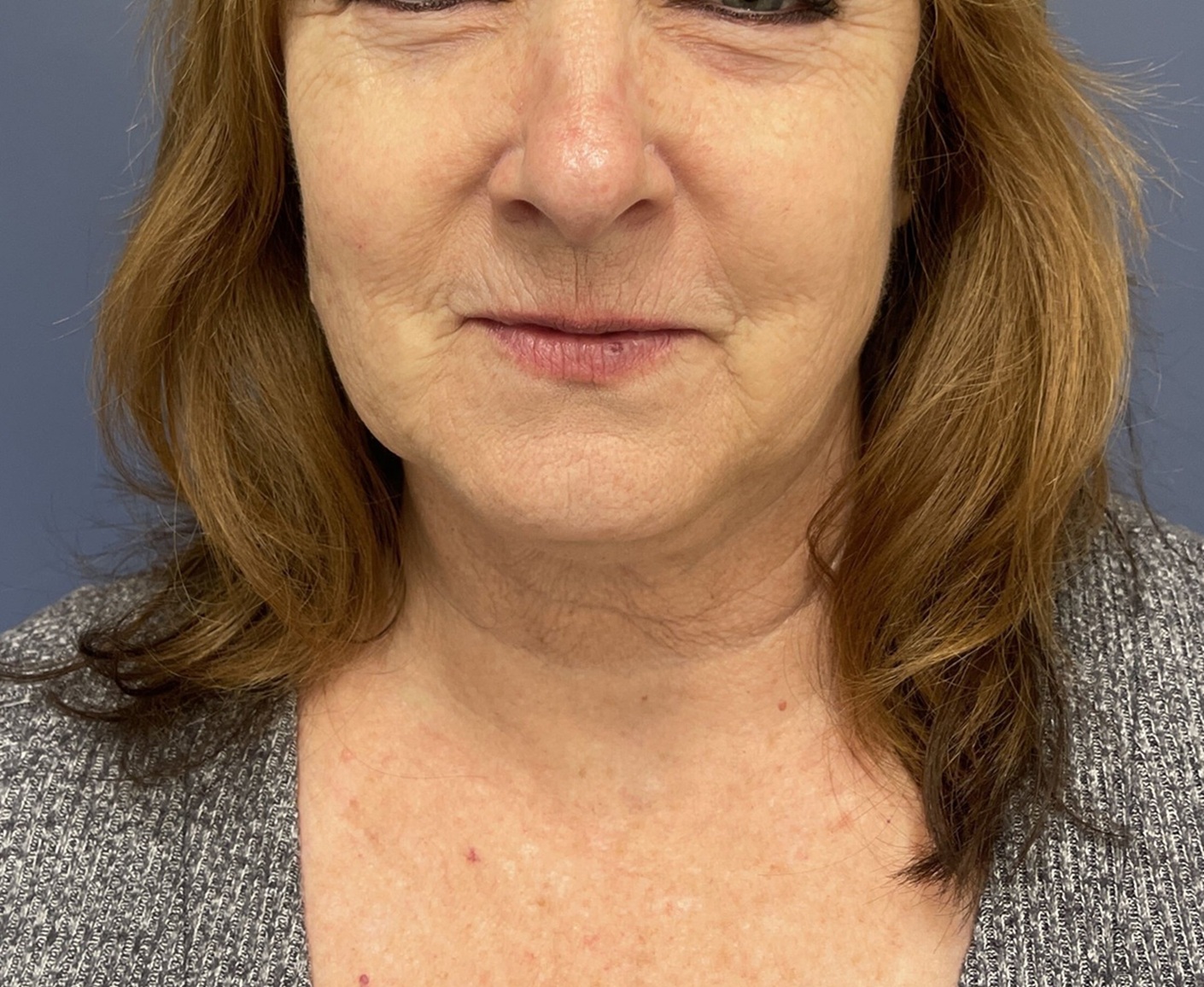The patient underwent 2 sessions of Sciton Broad Band Light treatment also known as BBL. This device uses different wavelengths of the light that can reduce the appearance of pigmented spots as well as red spots. Typically, the treatments have to be repeated at least 3 times -1 month apart -to get the maximum result and ongoing maintenance treatments are necessary. It is often combined with a laser- Cynosure Genius Ultra- a 1927 mn wavelength device to smooth the skin. The treatments can be performed without anesthesia but topical numbing medicine is utilized. These are performed in Dr. Lyle’s office by his aesthetic nurse or physician assistant.